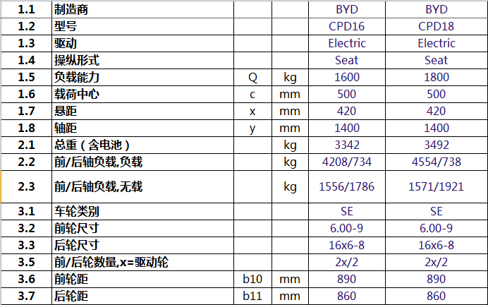 注:基于產品技術升級的原因,比亞迪叉車保留對上述部分參數進行修改的權利。