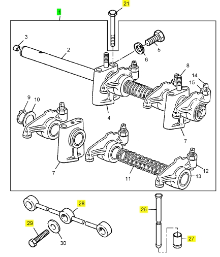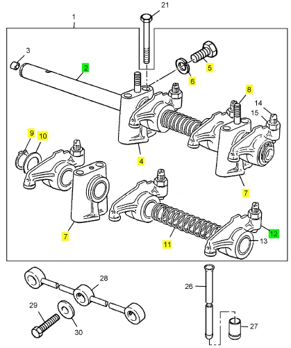1 OE52907 2 OE52907 ROCKER SHAFT ASSEMBLY
